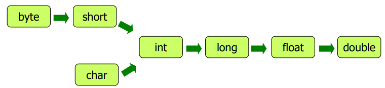 - 작은 범위의 자료형을 큰 범위 자료형에 할당하는경우 자동형변환이 된다