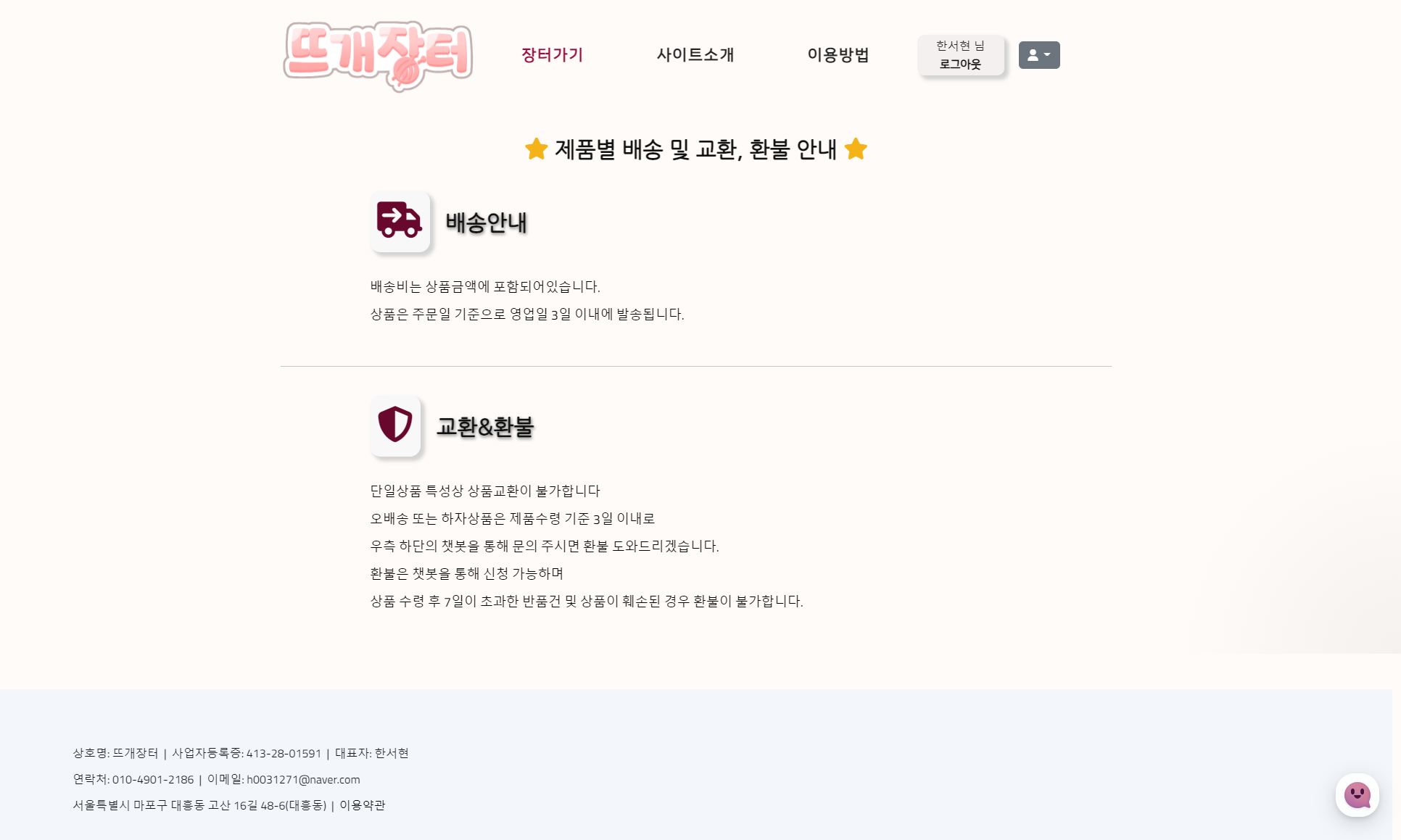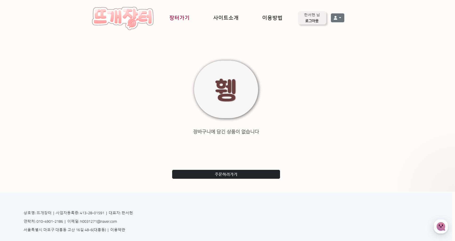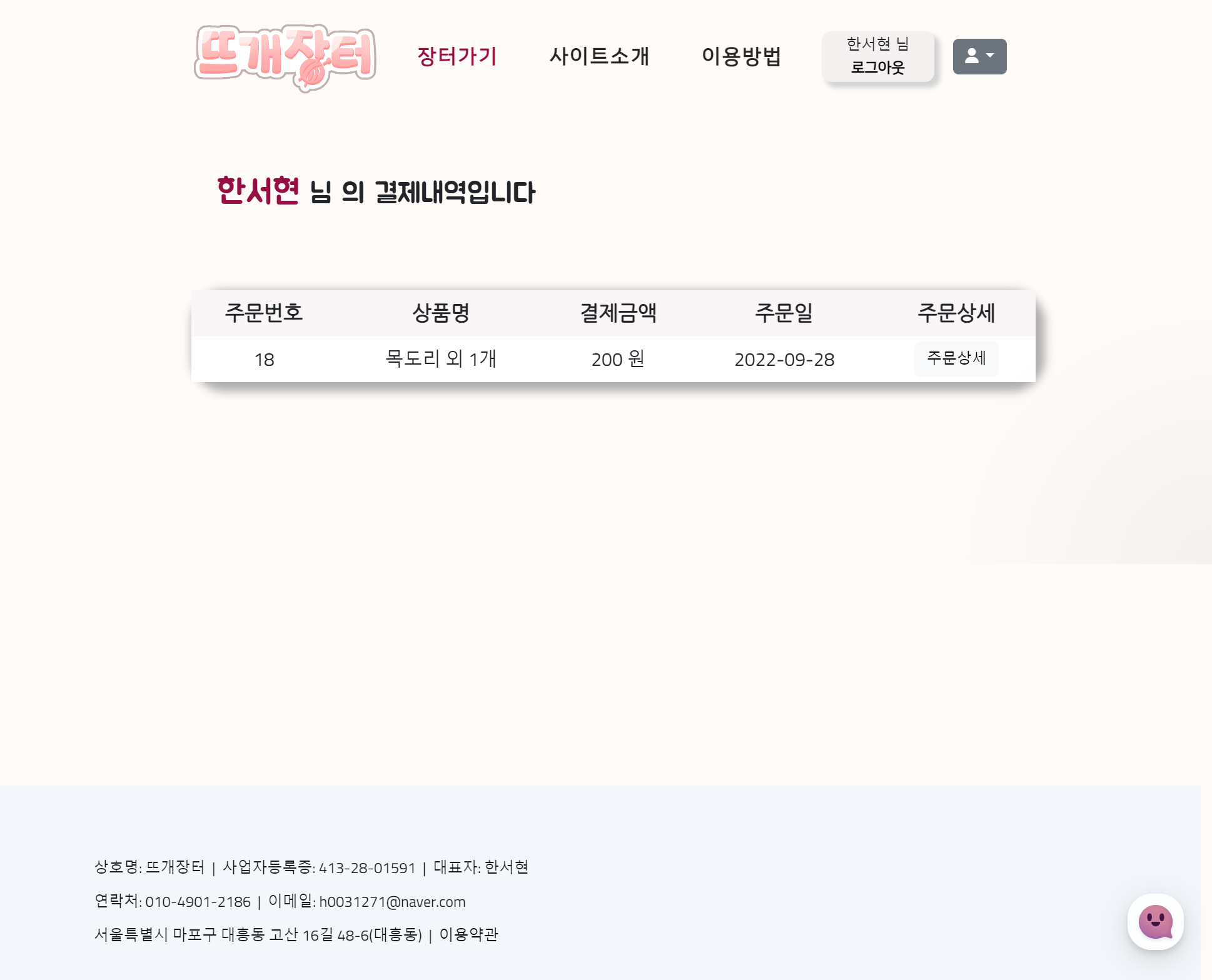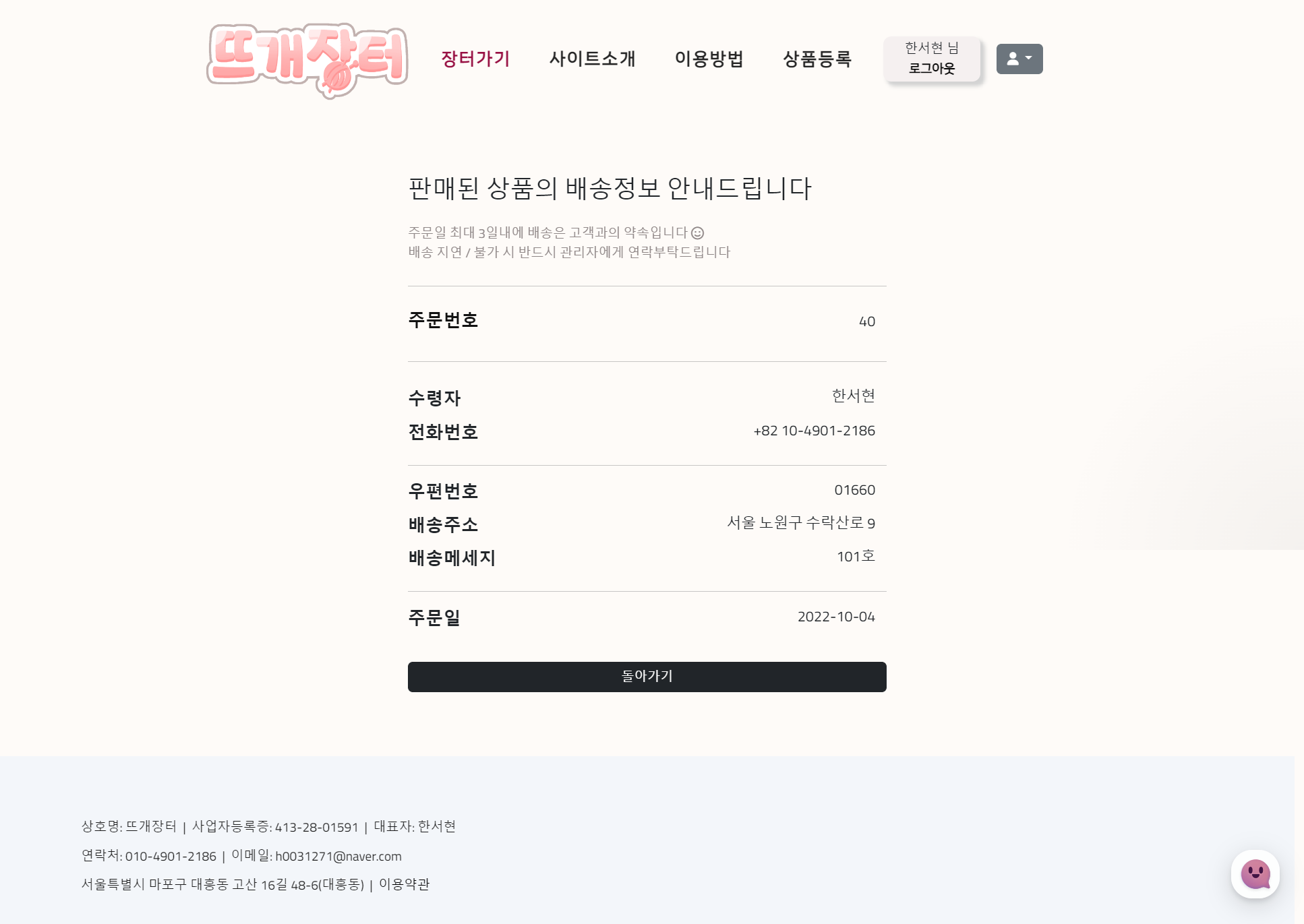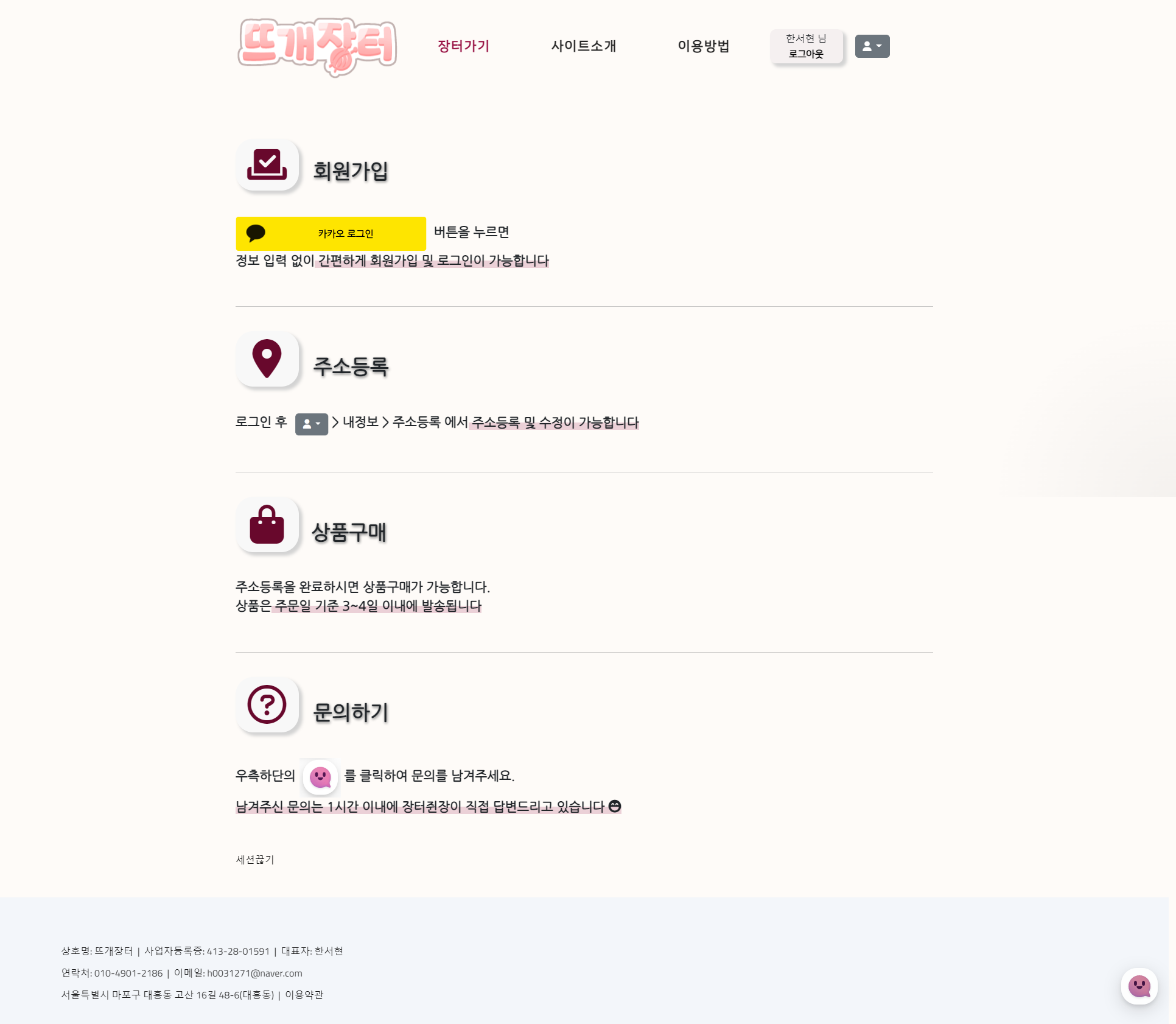 판매자로 로그인하면 상호명 확인가능