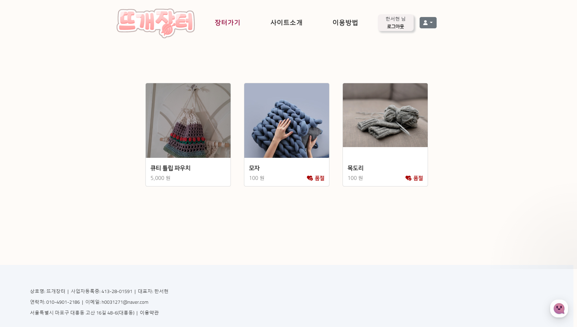 뜨개상품을 판매하는 사이트