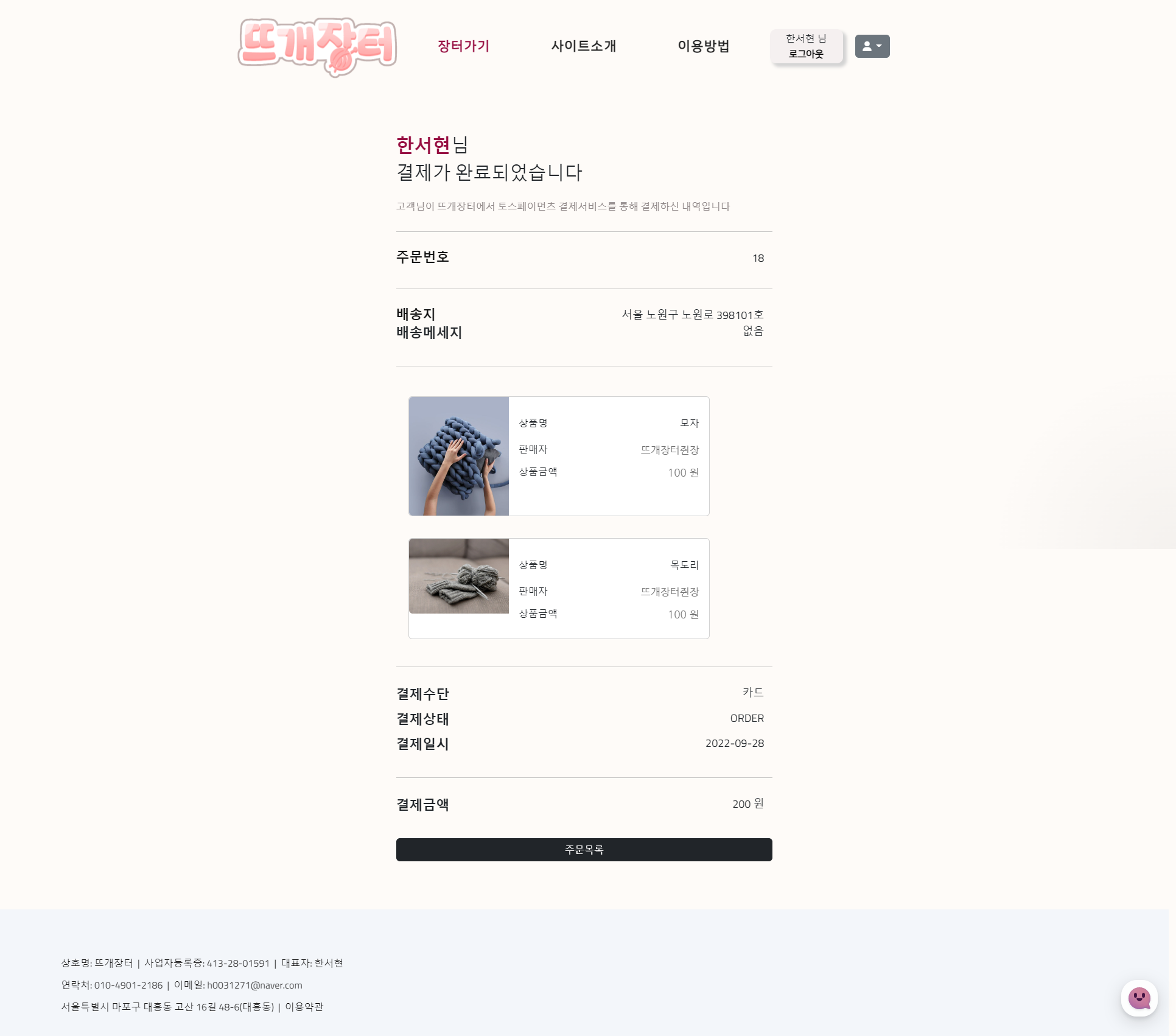 미니쇼핑몰 형식의 '뜨개장터' 웹서비스 구현 프로젝트