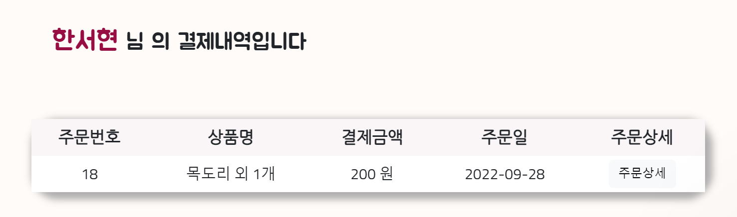 결제가 완료되면 Order 테이블에 저장.