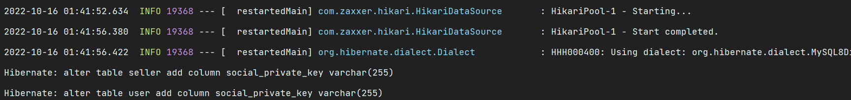 social_private_key 이름으로 컬럼을 생성했다.