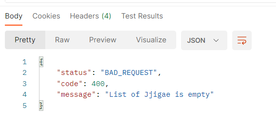 γ΄ JjigaeException λ°μ : message "List of Jjigae is empty"