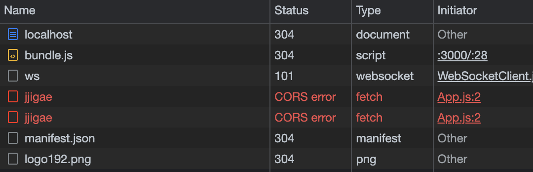 코드를 작성하고 서버에 데이터 요청을 했더니 CORS 라는 에러가 발생한다.