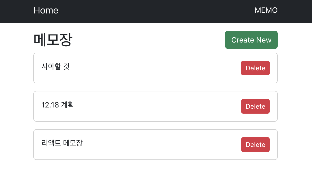 Create New 버튼을 누르면 메모를 생성하는 페이지로 넘어간다.