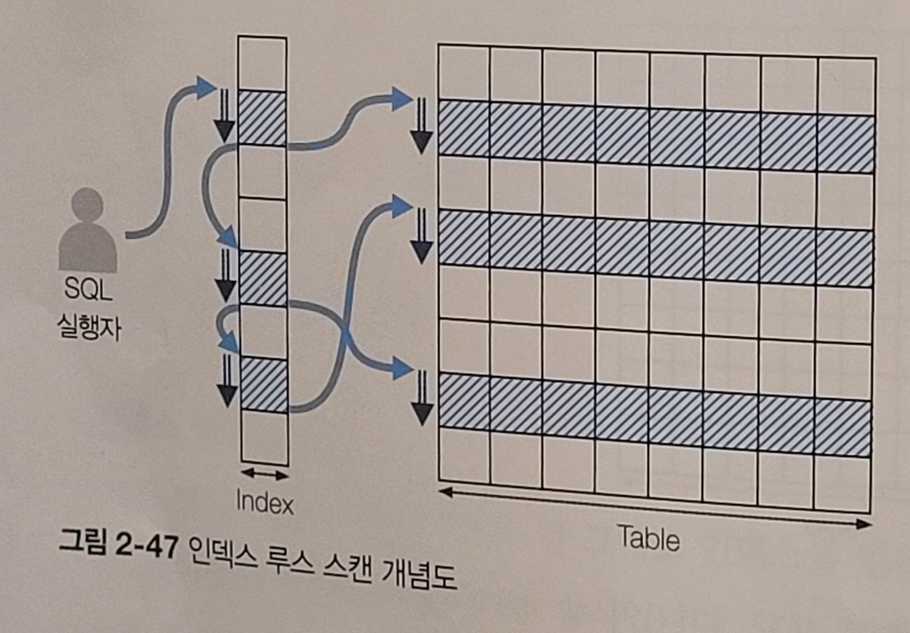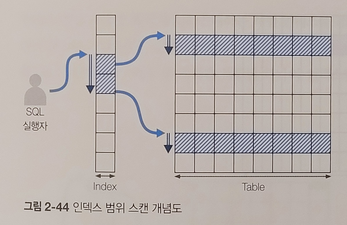 - 인덱스를 범위 기준으로 스캔한 뒤 스캔 결과를 토대로 테이블의 데이터를 찾아가는 방식
