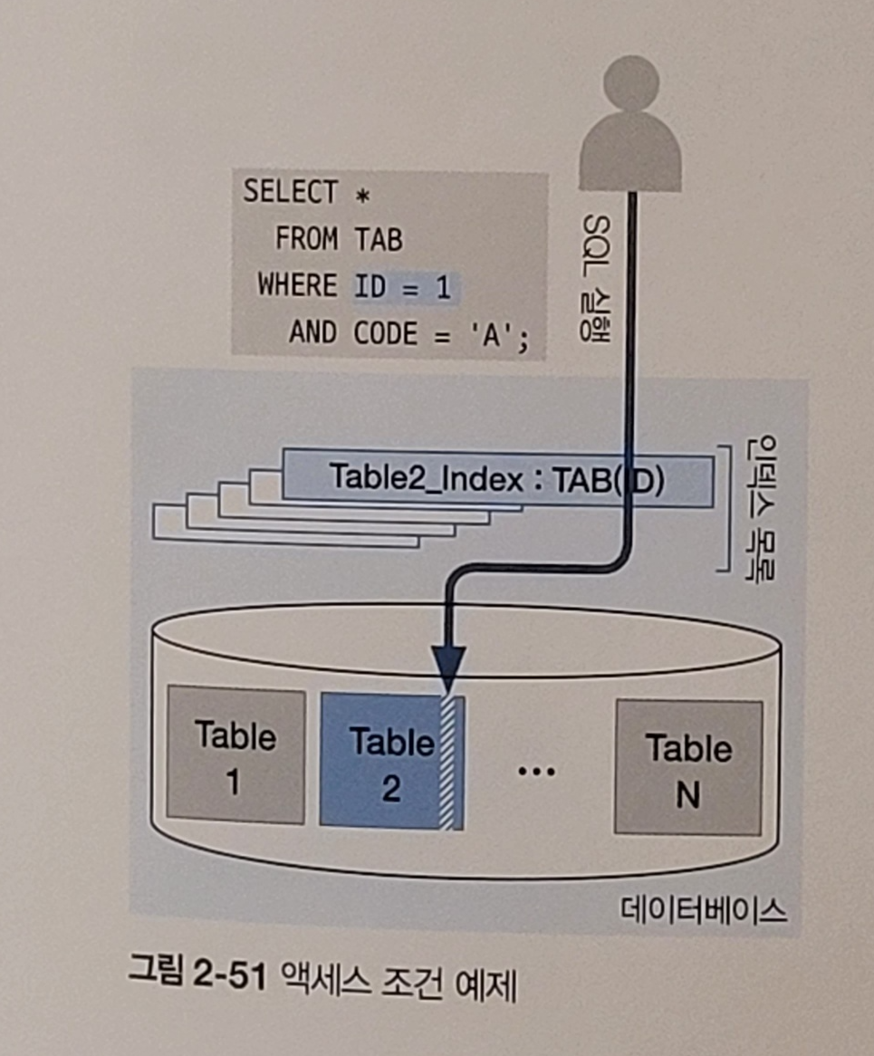 이때 맨 처음 디스크에서 데이터를 검색하는 조건을 액세스 조건이라고 하고,