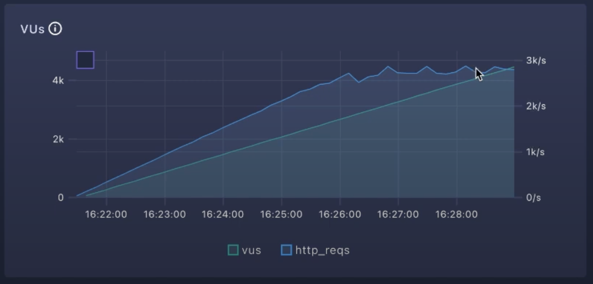 k6 λΆνν μ€νΈλ₯Ό μ§ννλ©΄μ μ²μμ μ ν ν 6000 κ°μμ μ μμ λλ¬ν λκΉμ§ κΈ°λ€λ¦΄ νμλ μκ³