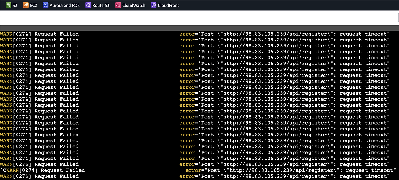 - 부하 테스트 #2 – DB를 별도 인스턴스로 분리 : Failed
