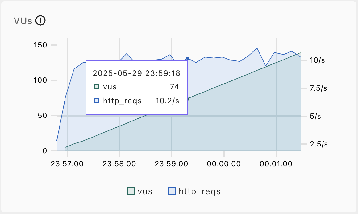 - 10분 동안 VU(가상 사용자)를 30 → 300명까지 점진적으로 증가시키며 부하를 가함