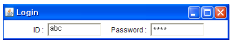 pwd.setEchoChar('*');// 입력한 값 대신 '*'가 보이도록 한다.