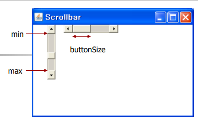 Scrollbar ver = new Scrollbar(Scrollbar.VERTICAL, 50, 20, 0, 100); // 수직 스크롤