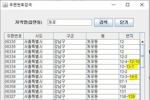 String sql = "select * from zipcode where dong like '%'||?||'%'";