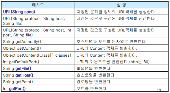 ▶ URLConnection : 어플리케이션과 URL간의 통신연결을 나타내는 클래스의 최상위 클래스로 추상클래스
