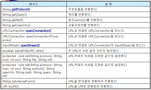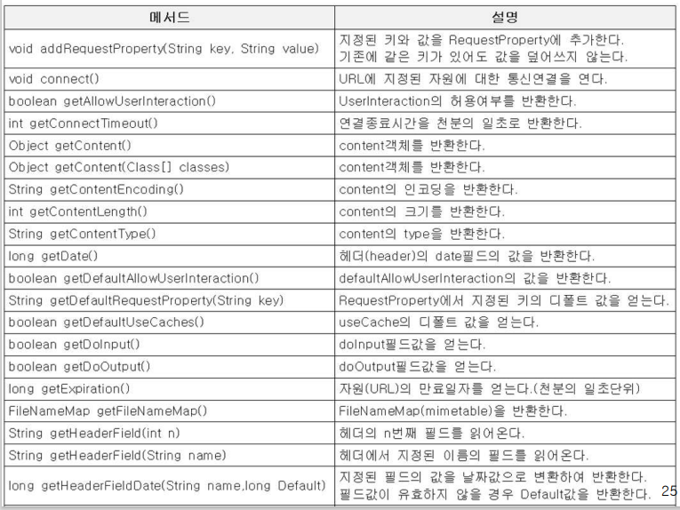 - URLConnection을 사용해서 연결하고자하는 자원에 접 근하고 읽고 쓰기를 할 수 있다