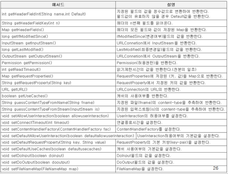 // = > URLConnection을 생성하고 get메서드들을 통해서 관련 정보를 얻어서 출력