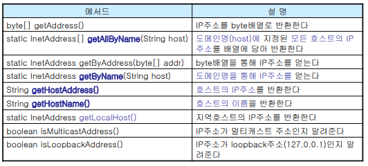 - 자바에서는 IP 주소를 다루기 위한 클래스로 InetAddress 를 제공한다