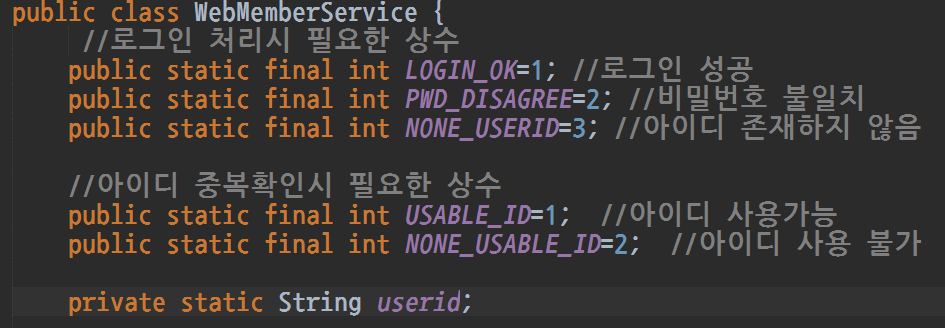 Static Userid 는 로그인 후 추후에 id 다시 사용할 일 있으면 여기서 꺼내쓰려고 선언해둠