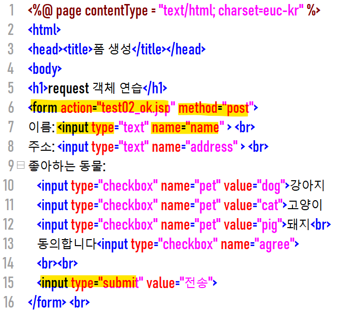 submit 전송을 누르면 form 태그의 속성중에서 action에 지정되어있는 test02_ok로