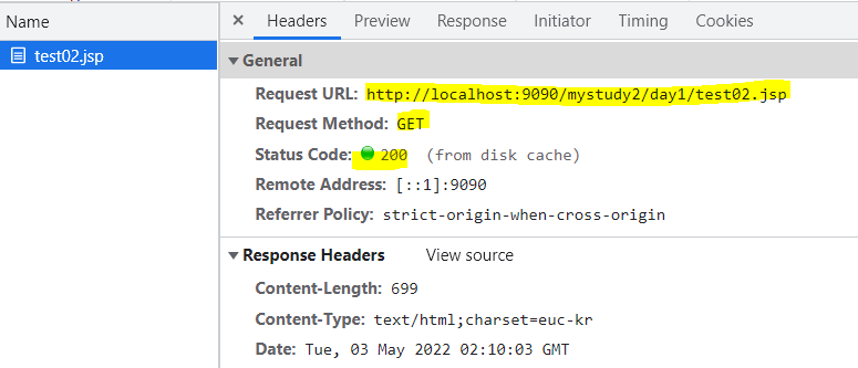 ex ) http://192.168.0.100:9090/testsite/day1/test03.jsp