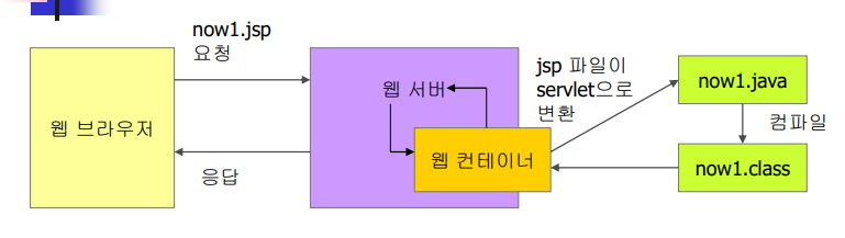 웹 브라우저에서 jsp 페이지를 웹 서버로 요청하면