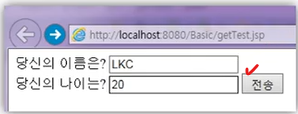 전송을 눌렀을때 form 에 들어있는 값들을 get 방식으로 url 뒤에 포함하여 전달하게됨
