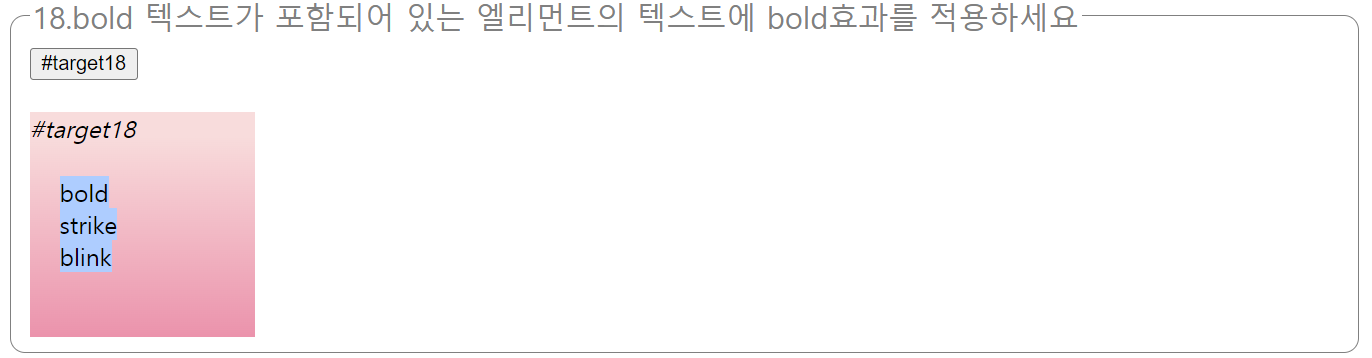 $("#target18").children(":contains(bold)").css("font-weight","bold");