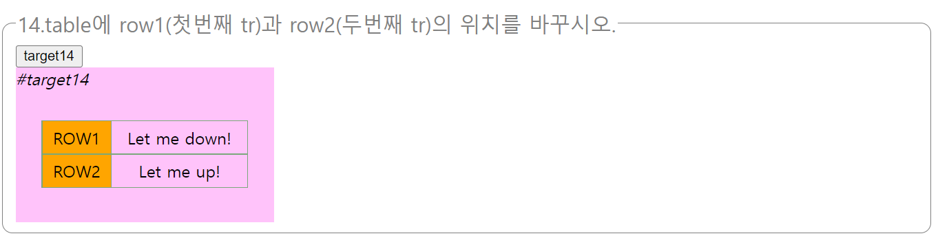 $("#target14 table tr:eq(0)").appendTo("#target14 table");