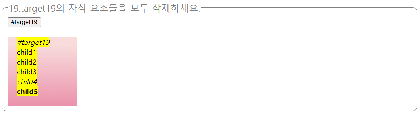 - 내용만 지울 뿐 태그는 남아있다 !! = 태그포함 요소 전체를 지우고싶다면 .remove() 사용