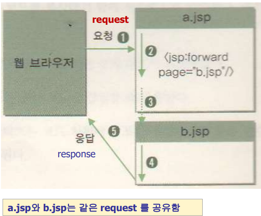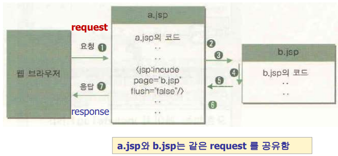 a.jsp와 b.jsp 는 같은 request 내부 객체를 공유함