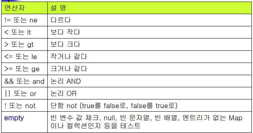 - el 표현식에는 연산자 사용 가능, 내장객체 지원함