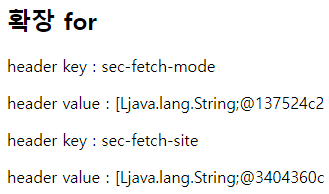 예제 ) forEach 를 사용해서 header로부터 파라미터명과 값을 출력