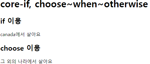<c:set var="country" value ="canada" /> // ** 여기 value 에 따라 출력결과가 달라짐