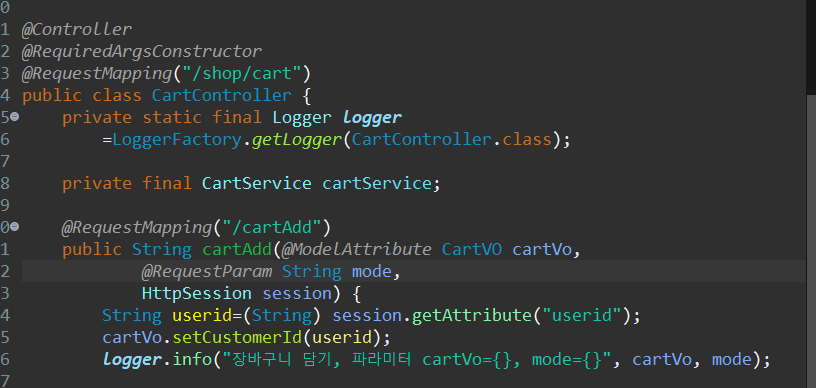 - cartVo 의 userid 변수에 세션아이디를 set 한다