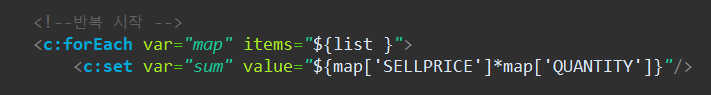 4. 장바구니 리스트의 총 합계금액 (sum : 위에서 상품금액 *(곱하기) map 의 수량 로 값 구한것) format 맞춰서 set