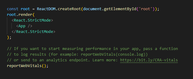App 컴포넌트를 아이디가 root 인 엘리먼트에 그린다고 생각하자