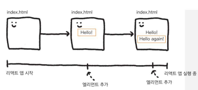 처음에는 빈 html 이 나오고 app.js 에서 리턴된 값을 채워넣는형식