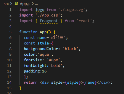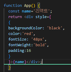 - 리액트에서 DOM 요소에 스타일을 적용할 때는 문자열 형태로 넣는 것이 아니라 객체 형태로 넣어 주어야 함